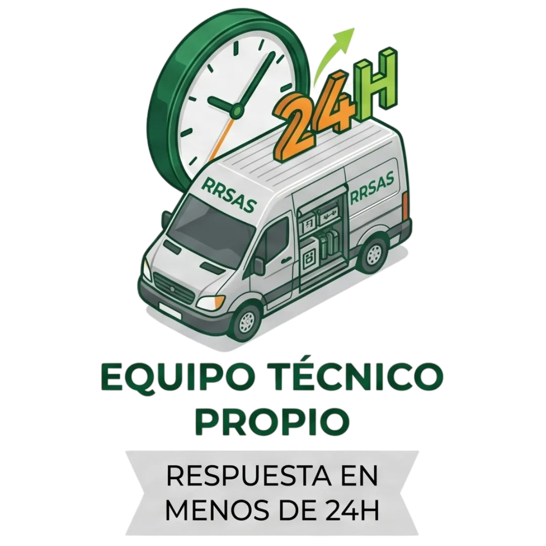 Técnicos en nómina, vehículos propios y equipos especializados mantenidos en casa. No dependemos de terceros; respondemos cuando lo necesitas.